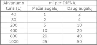 Jeigu Jūsų akvariumas apšviestas vidutiniо intensyvumo šviesa (nuo 0,3 iki 0,8 W/l fluorescencinių lempų su reflektoriais), auginate nereiklius apšvietimui augalus, papildomai tiekiate dujinį CO2, mes rekomenduojame naudoti šias priemones: